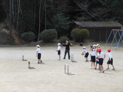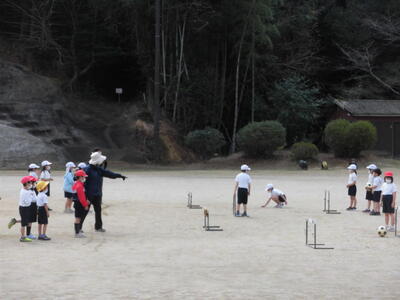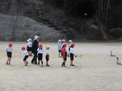 1年生は、サッカー型のボール遊びに取り組んでいました。