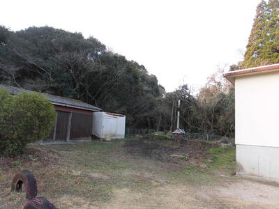 プールの北側、駐車場、玄関付近です。