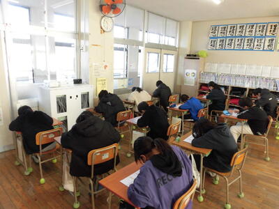 6年生は、今学年で学習した漢字全問正解を目指してテストに取り組みました。