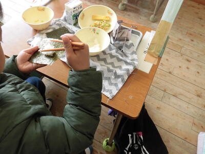 1年生の中には、海苔を開けずに「酢飯」を平らげている子もいました。