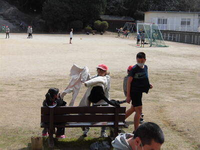 子供たちは、厚手の上着を脱ぎ捨てて遊びに没頭します。
