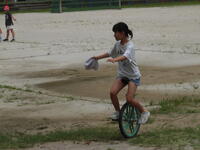 最近、たくさんの子供たちが一輪車の練習をしています。