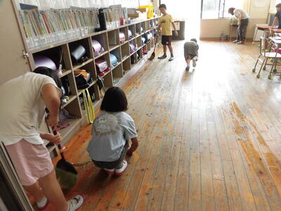 今朝は、ちょこっとボランティアの子供たちが、草取りをしてくれています。