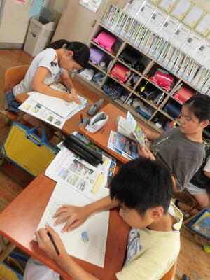 子供たちは、「なぜ、金閣寺はピカピカなのに、銀閣寺は地味なの?」という疑問を解明するために頑張っていました。
