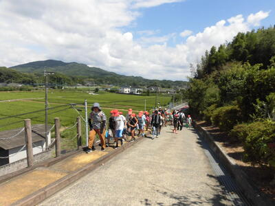 秋晴れのいい天気の中、今日は、3年生が「山川なし園」に体験学習に出かけます。
