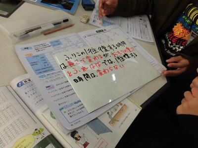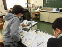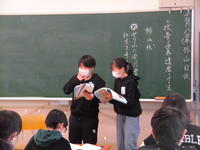 6年生は、狂言「柿山伏」をペアで読む練習をしていました。