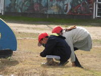 サッカーやブランコ、滑り台などで遊ぶ子が多い中で、何やら地面を捜索する姿が。。。