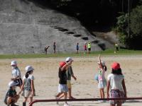 6年生のお兄さんたちが、1年生に野球を教えてくれていました。