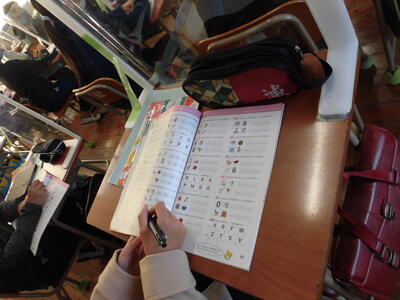 今日は、ALTのアラン先生が来られているので、どの学年も英語の勉強があります。