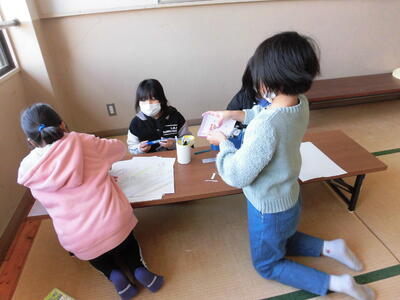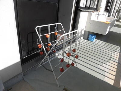用務員さんたちに協力していただき、スマイルの子供たちが干し柿に挑戦中です。