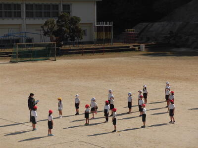 出張から帰って運動場を見ると、4年生が体育をしていました。