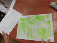 1年生は、床や壁をこすって、作品をつくっていました。