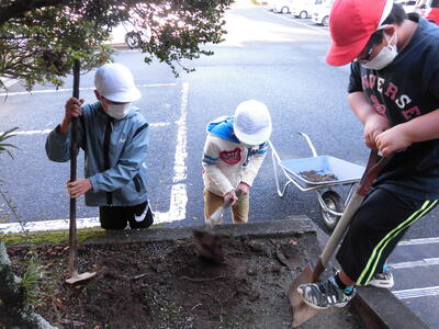 張り切ってクワやスコップをふるってくれました。