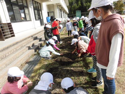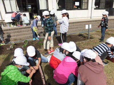 苗を買ってもらい、花壇に秋から冬の花を植えます。