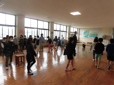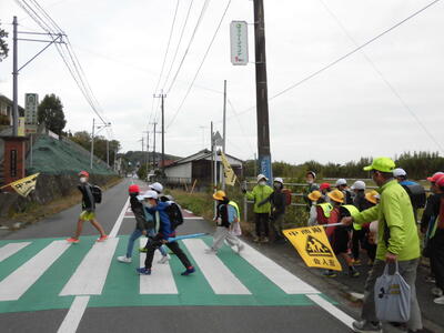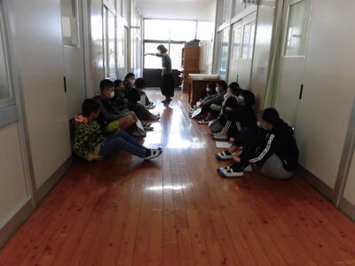 3年生は、見学旅行前の集団行動の練習をしていました。