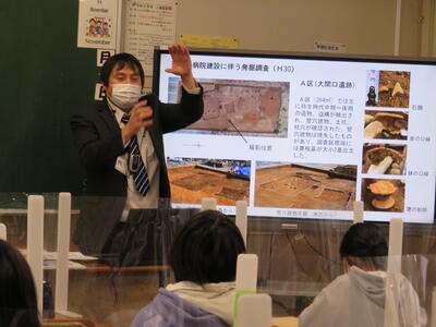 今日は、荒尾市文化企画の福田さんに来校いただき、平井地区を中心とした荒尾の歴史について学習しました。