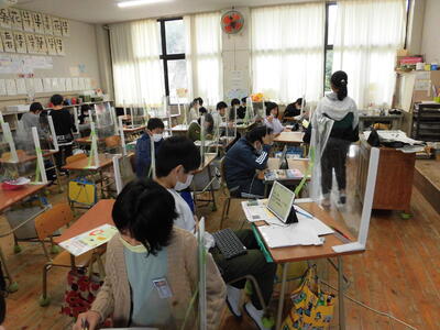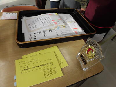 オンラインで子供たちに紹介した後、校長が各教室をまわって賞状などを手渡しました。