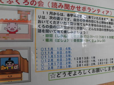 1年生の廊下に、ニコニコ笑顔のお魚さんの絵が貼ってあります。