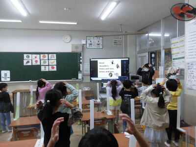 1年生で「Good morning everyone!」とあいさつしたら、すぐに「Good morning こうちょうせんせ~い!」とお返事が返ってきました!