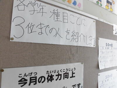 目標を高く持って取り組むことができるように、体育コーナーの掲示が変わりました。