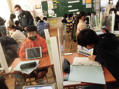 6年生は、専科の高山先生やALTのアラン先生、担任の先生たちの応援を受けながら発表会をしていました。