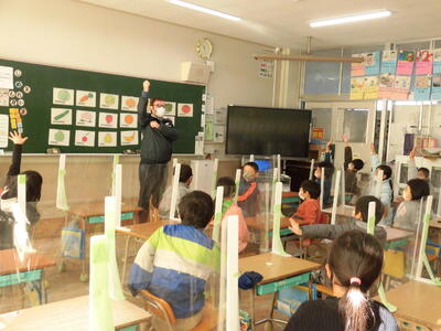「色は?」「どんな料理に使うの?」などの質問に英語で答えながら、ヒントを出していきます。