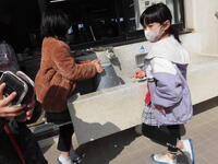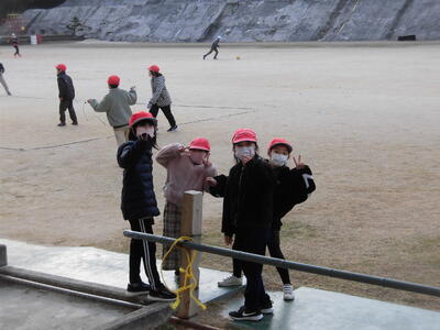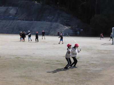縄跳びが上手な6年生のところには、2年生が集まってきます。