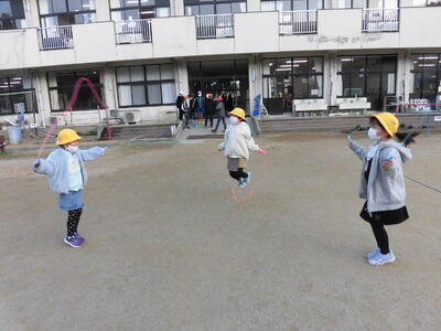 「つるつるするから、気をつけてね」と言いながら運動場を歩きます。
