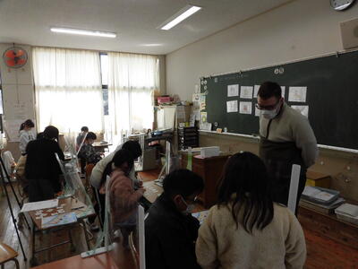 4年生の子供たちが、ALTのアラン先生と外国語活動の学習をしていました。