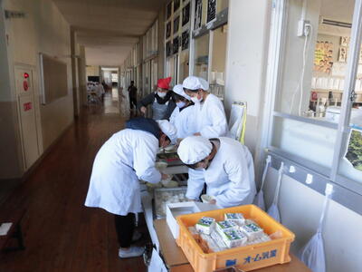 コロナ対策を緩和したため、自分たちで配膳ができるので、1年生は張り切っていました。
