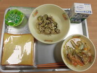 「かぼちゃパン」「南関あげいりうどん」「かみかみサラダ」「青リンゴゼリー」