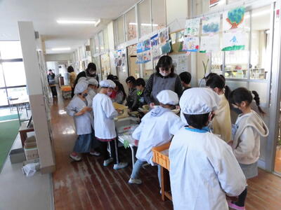 コロナが少し収まったので、給食当番による配膳を再開しました。