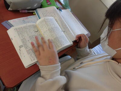 難しい言葉がたくさん出てくるので、辞書で調べていました。
