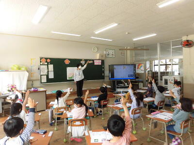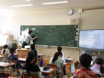 4年生は、気温の変化について学んだ後、校庭に出てデータをとっていました。