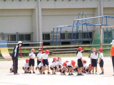 体育の時間は、ビシッと整列した後、かけっこをしていました。