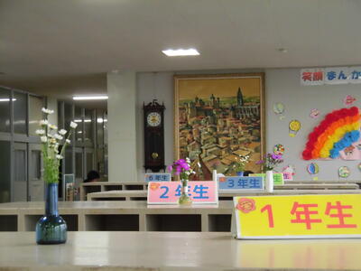 子供たちのために児童昇降口に飾っている花たちには気づいてくれているかなあ~。
