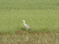 縁起がいいとも言われているアオサギが、学校のすぐ近くで餌をついばんでいました。