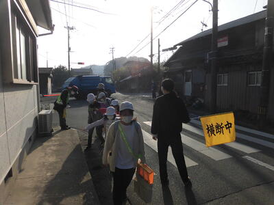 登校班は、1年生の歩みに合わせて、少しゆっくり来てくれました。