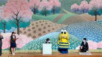 「笑顔まんかい平井小」ののぼり旗と共に、子供たちを迎える準備をしていただいています。