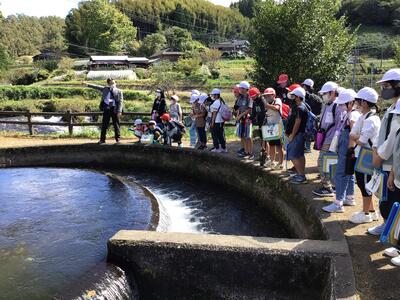 通潤橋を中心に、円形分水や用水の取り入れ口を見学しました。