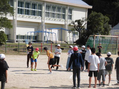 6年生は、昨日の疲れも見せずクラス全員で新しい遊びをやっていました。