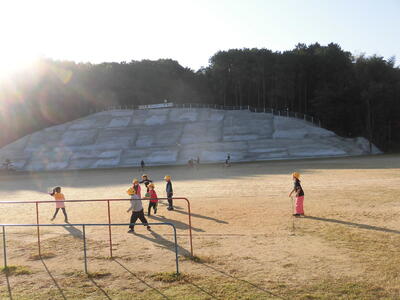 秋の柔らかな陽射しの中、子供たちが遊んでいます。