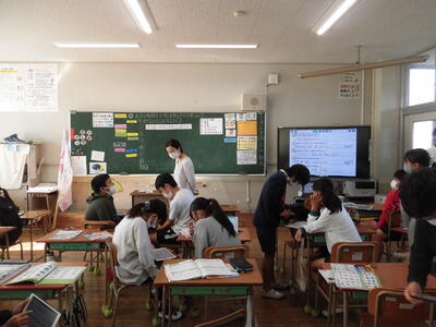 登校班に5年生がいないので、仮の班長・副班長が活躍しています。