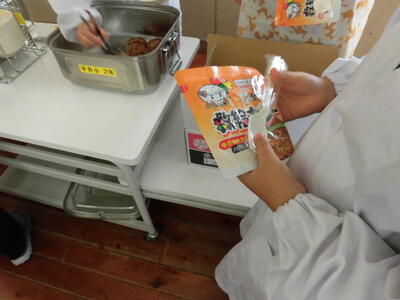 1年生は、「救給カレー」の説明を聞くことで、災害などの緊急事態の勉強をする機会にもなりました。