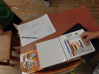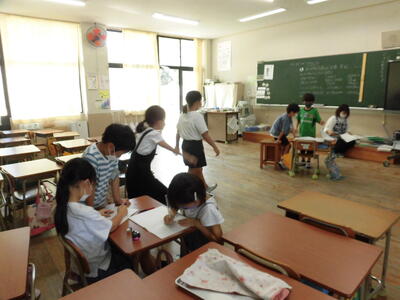 2年生の教室では、お絵かきやおしゃべりを楽しむ姿があります。