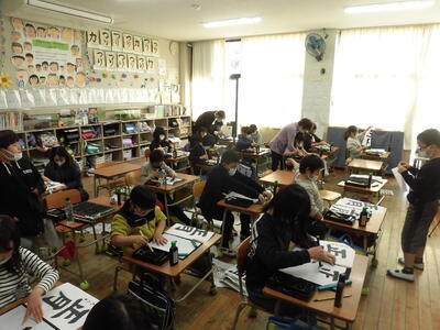 3年生は、書写の授業で「正月」を書いていました。