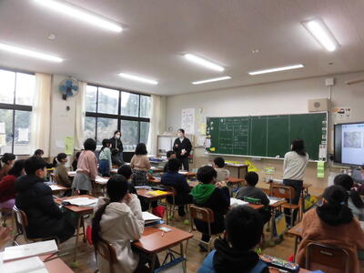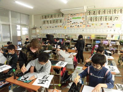 今日は、6年生と3年生の書写の授業に、ボランティアの皆さんが来てくださいました。
