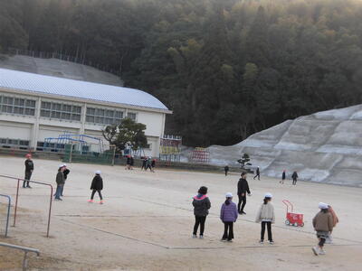 雨が上がって乾いた運動場に、早速子供たちが駆け出していきました。