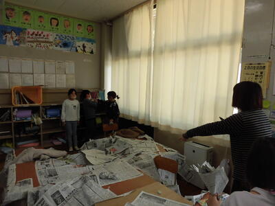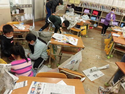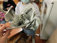 気になって見に行くと、2年生が新聞紙で楽しい作品を創っているところでした。