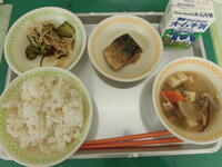 今日の給食は、のっぺい汁とサバのごま味噌煮です。